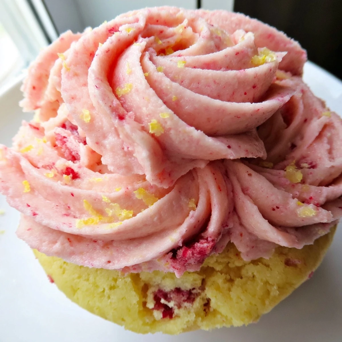 Frozen strawberries work well in the buttercream frosting, but for the cupcake batter, fresh chopped strawberries are recommended. Frozen fruit releases excess moisture during baking which can make cupcakes dense. If using frozen, thaw and pat them very dry before folding into the batter.