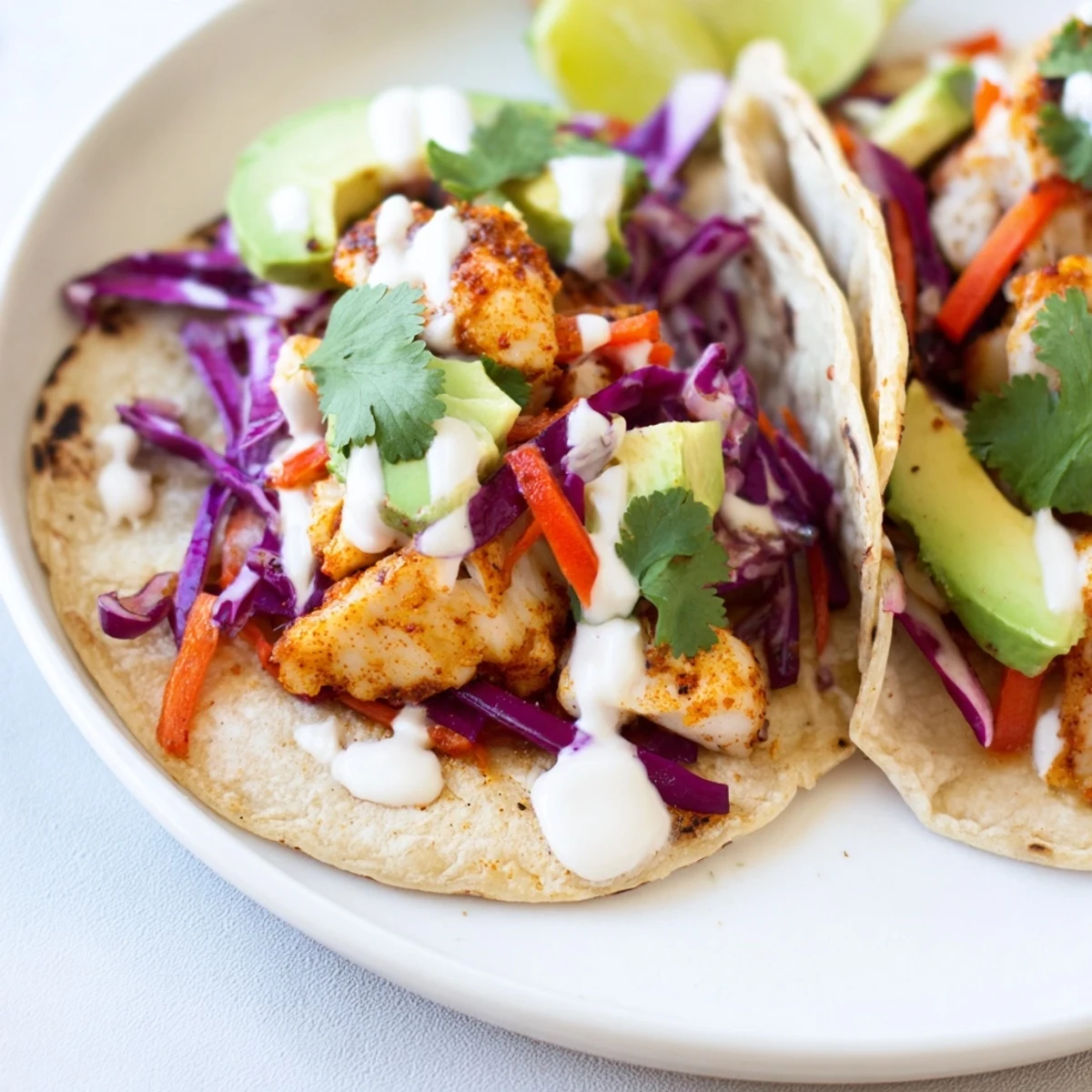These satisfying tacos feature tender tilapia fillets seasoned with chili powder, cumin, and smoked paprika, then pan-seared until golden. The fish gets paired with a crunchy cabbage and carrot slaw dressed in lime, plus a cool crema sauce that balances the spices. Warm corn or flour tortillas hold everything together, while toppings like creamy avocado, fresh cilantro, and extra lime wedges let everyone customize their plate.